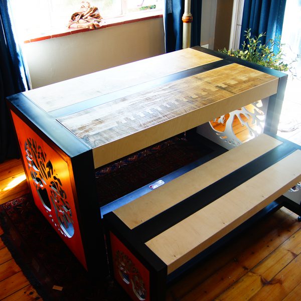 - Tree of life laser cut into the plywood for the sides of table and benches