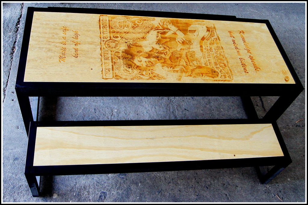We offer CNC cutting and shaping as well as laser cutting and engraving, which is more for wood and Perspex and glass, engraving with pictures and patterns or whatever photos the client might want to have engraved into any type of wood, perspex or glass.